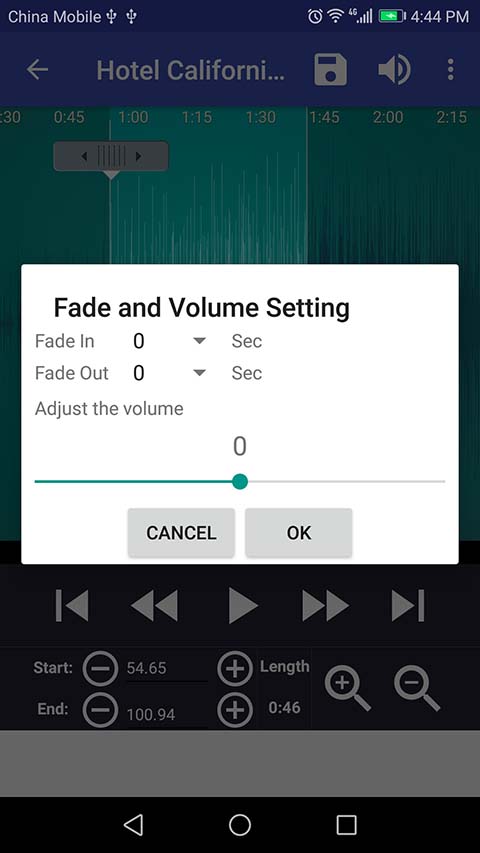 Step 3: To use the Fade in/Fade out effect, press the three dot in the upper right corner. Then select 'Fade and Volume'.