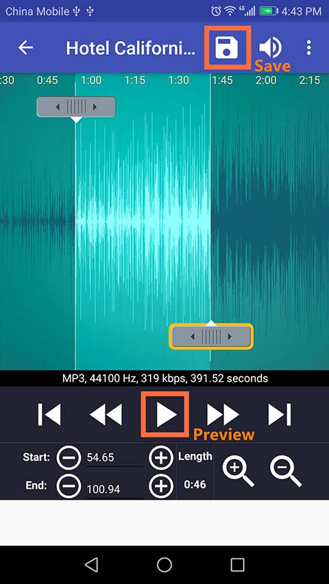 Also, if you know the exact time you would like the ringtone tone to start/end, you can directly input your desired values in the given fields.