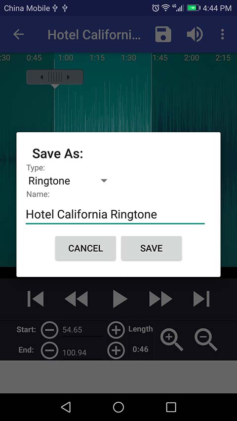 After you tap the save button, a menu will show up on which you are to select what you want the tone to be saved as and input the name the file will be saved as. After this, tap 'Save' and your ringtone will be saved.